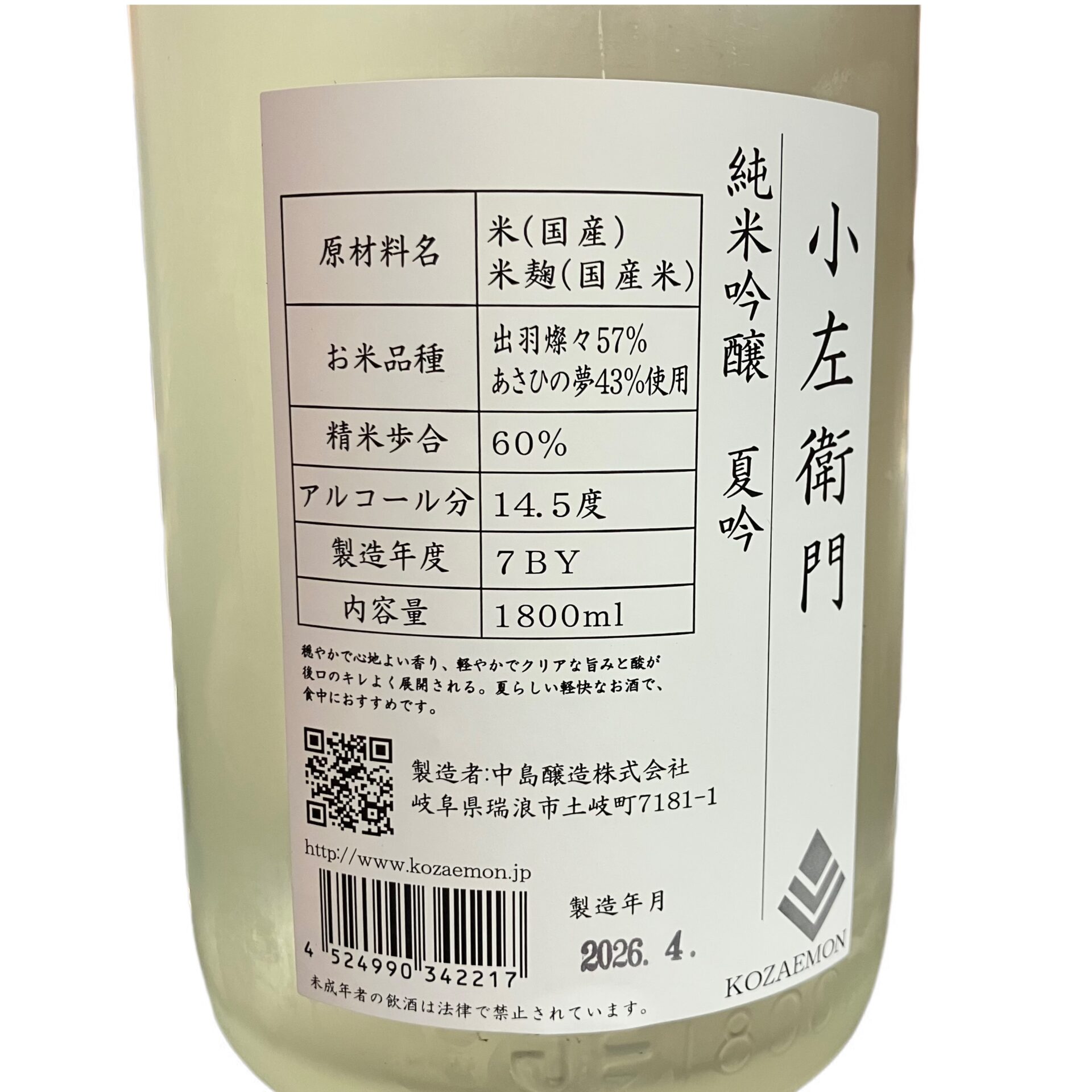 岐阜県の銘酒蔵「中島醸造」の醸す小左衛門。